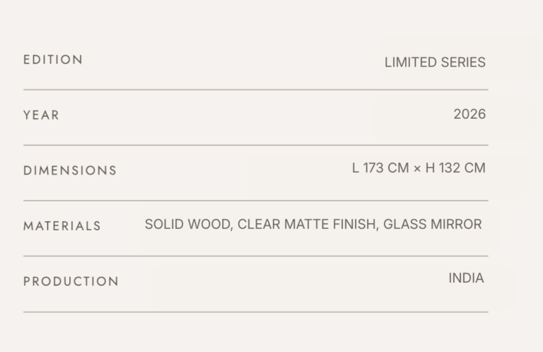 Designed as a composed personal surface, this dressing table balances reflection and restraint. The mirror and base are proportioned to feel present yet unobtrusive, allowing the piece to sit naturally within a bedroom setting.